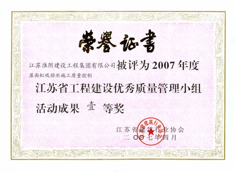 2007年省工程建设优秀质量管理小组活动成果优秀奖-SJ-20