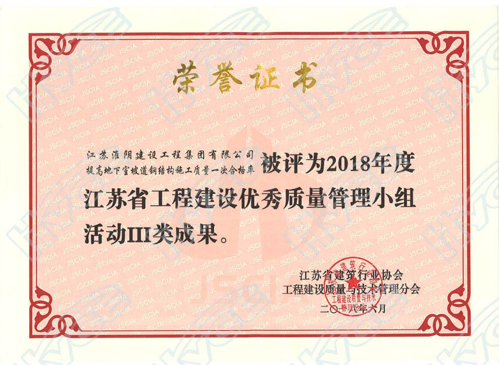 江苏省工程建设优秀质量管理小组活动I类成果