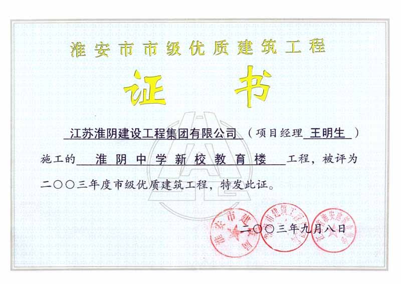 2003年市级优质工程淮中新校教育楼(王明生)