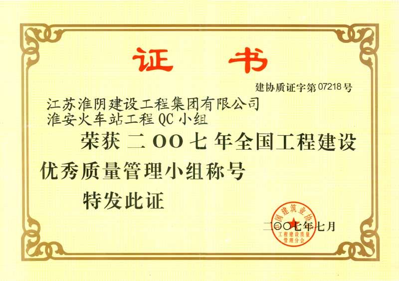 2007年全国工程建设优秀质量管理小组-火车站