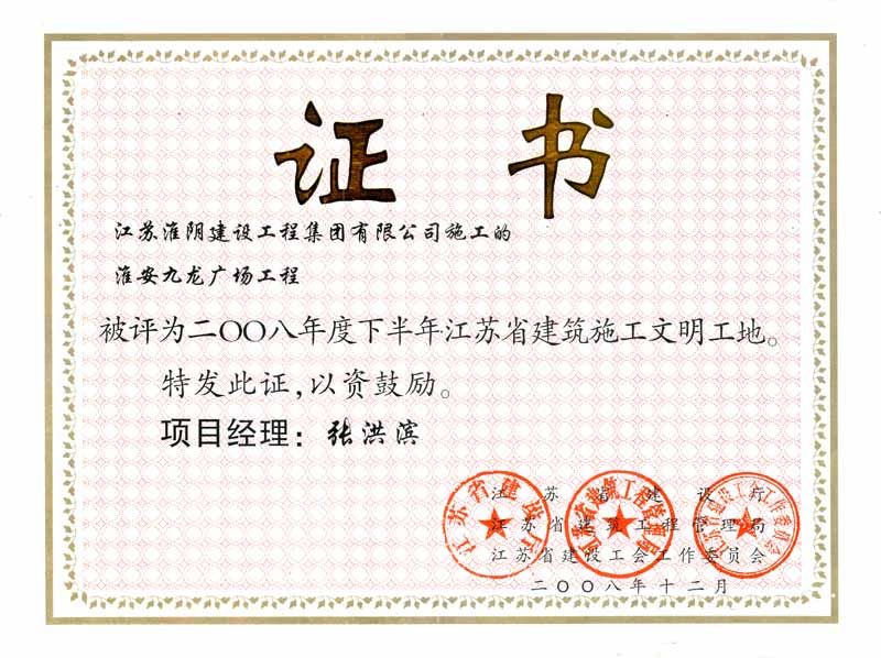 2008年省文明工地-淮安九龙广场-张洪滨