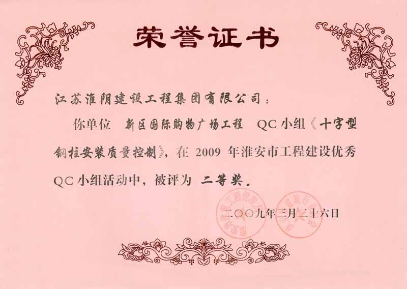 2009年市QC二等奖(新亚国际购物广场-十字型钢柱安装质量控制)