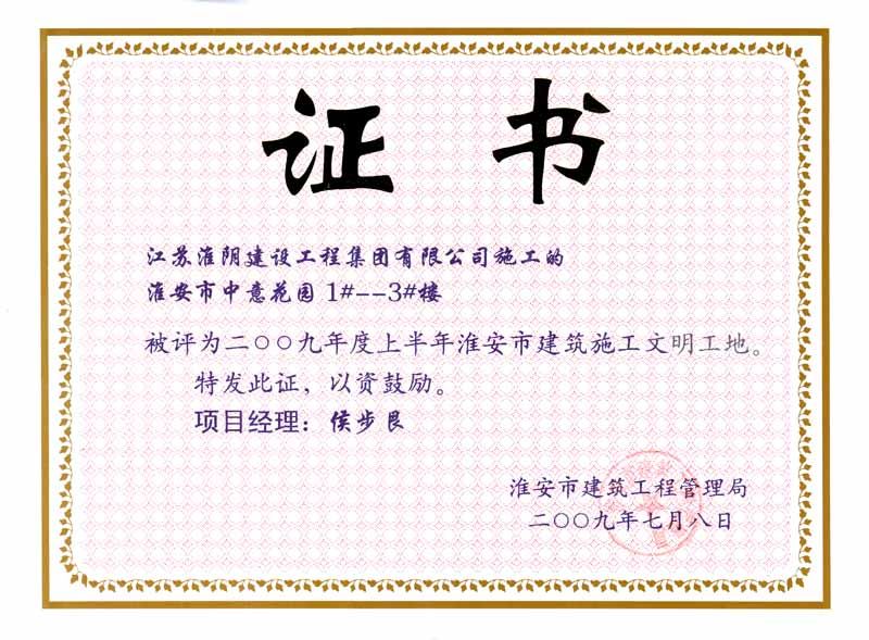 2009年市文明工地淮安市中意花园1#-3#楼-侯步艮