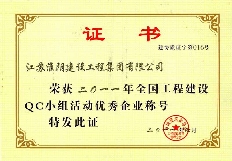 2011年全国工程建设QC小组活动优秀企业