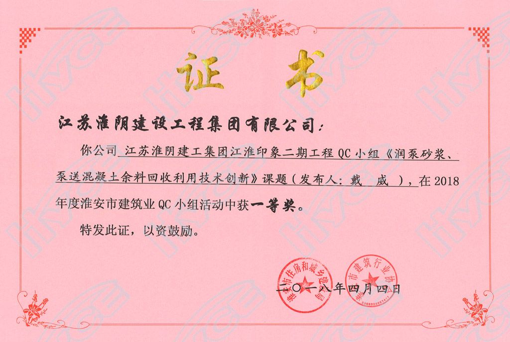 淮安市建筑业QC小组一等奖-江淮印象二期