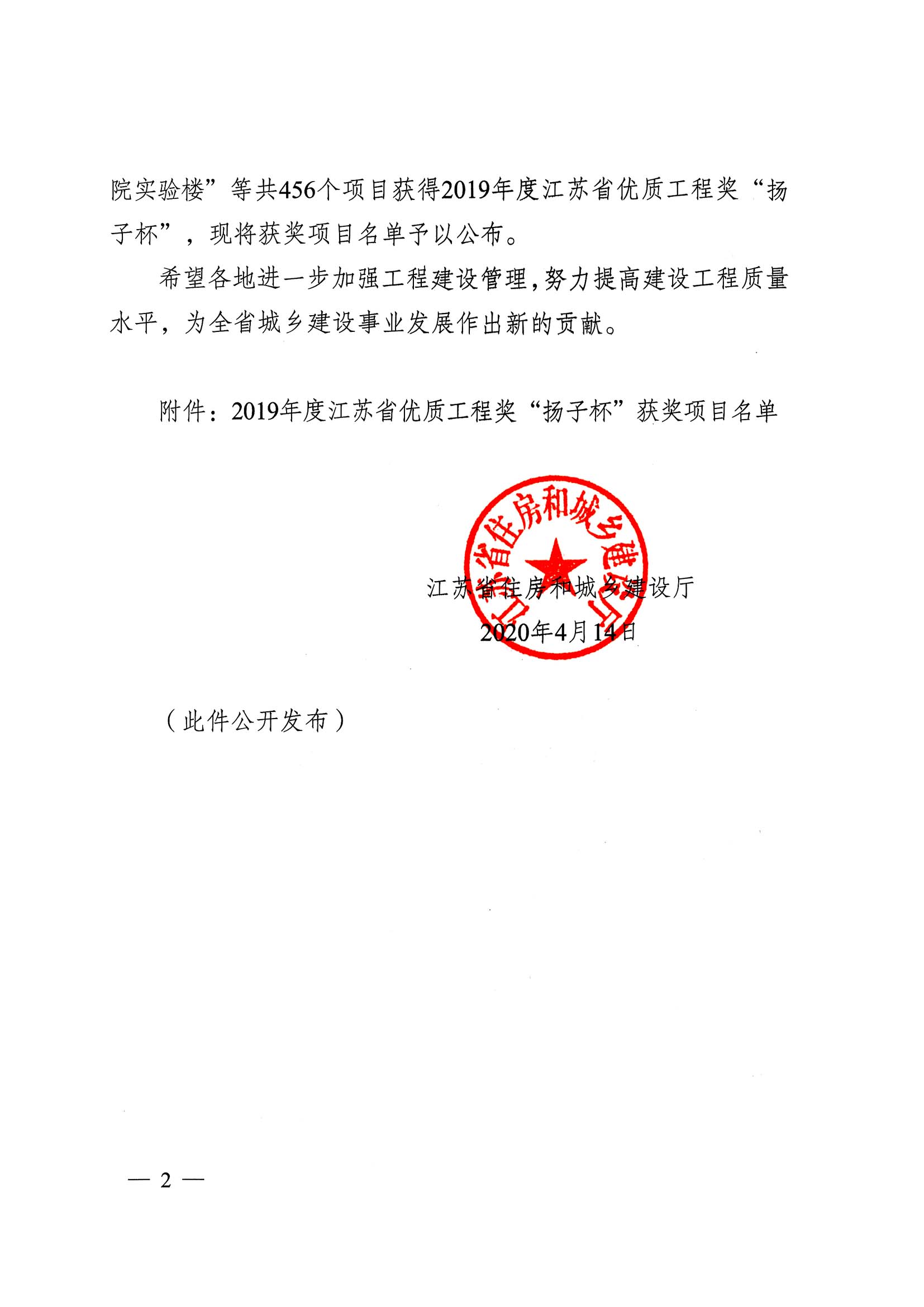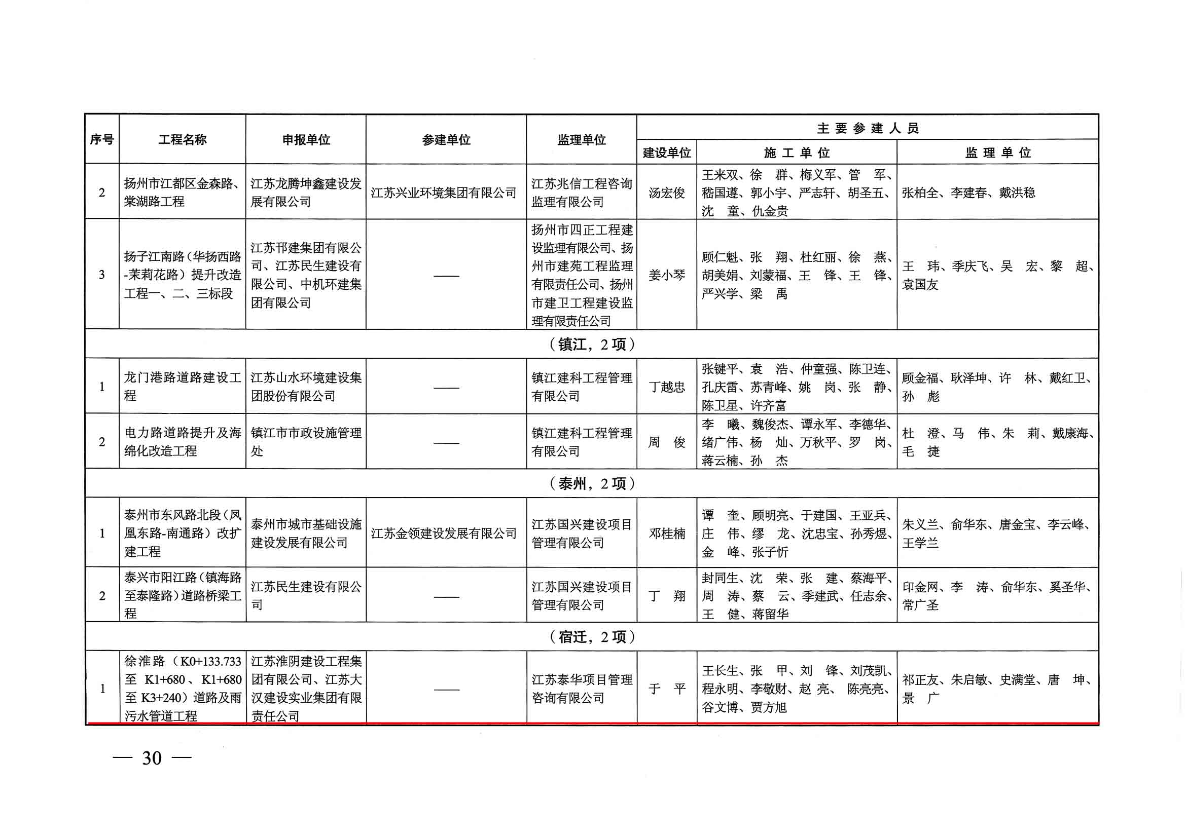 2019年度江苏省优质工程奖“扬子杯”-徐淮路道路及雨污水管道工程
