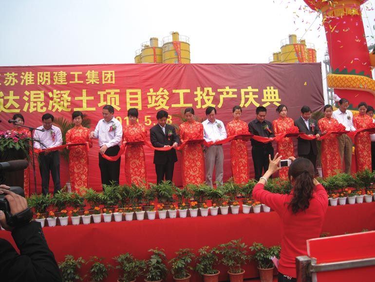 继集团淮安经济开发区工业园开园之后,集团又一个投资超亿元的工业项目混凝土及新型建材工业园中的混凝土项目,于2010年4月26日通过建设项目“三同时”验收,5月18日上午10时18分,集团在金达构件公司总部举行了隆重的竣工投产庆典。庆典由集团总经理胡从亮主持,董事长许金华致辞,淮阴区区委常委副区长李建国、市住建局副局长黄富国分别代表淮阴区委区政府和市住建局对集团金达混凝土项目的竣工投产表示祝贺,淮阴区副区长陈张以及市招标办、散办、墙改办、质监站、造价处、重点项目督查办等和淮阴区政府各部门负责人出席庆典,特邀嘉宾和集团领导、集团各部门、分子公司负责人参加了庆典。