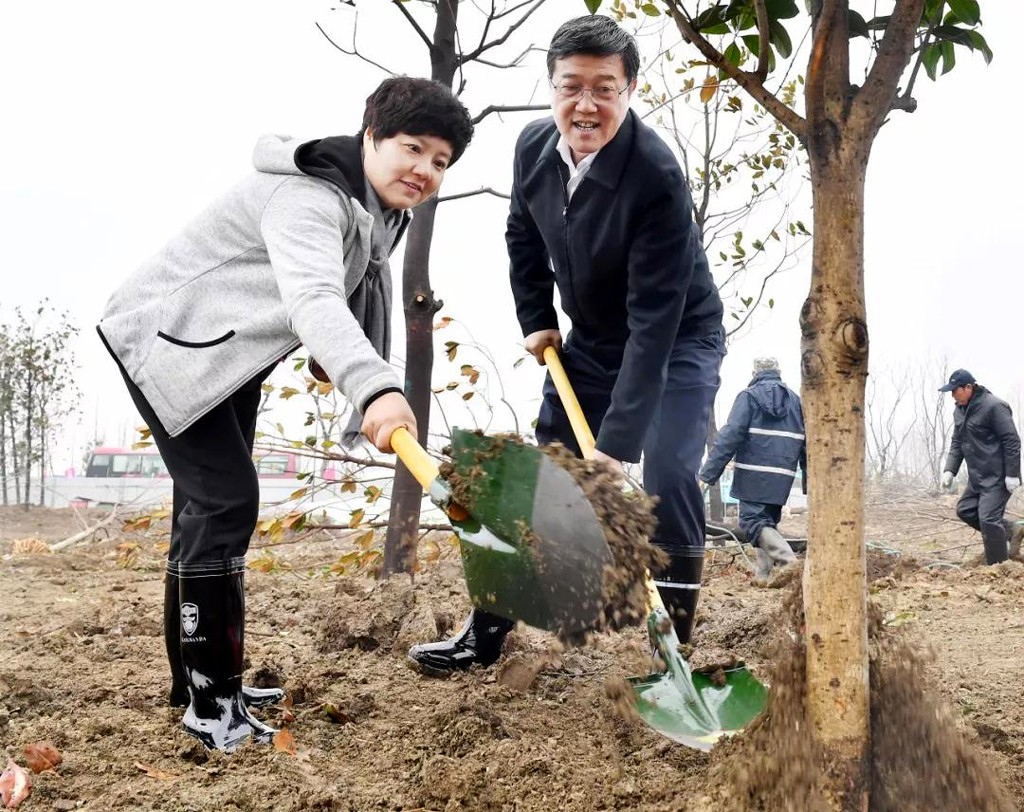 上午9时许,姚晓东、蔡丽新、王维凯、李晓雷、赵洪权、李伟、李森、周毅等市四套班子领导,与广大干部群众、驻淮部队官兵、高校青年志愿者等一道,来到义务植树地点——白马湖森林公园露营文化服务基地,穿上雨靴,拿起铁锨,走过泥泞的土路,在一棵桂花树苗旁,挥动铁锨,奋力铲土。大家齐心合力,挖坑、扶苗、培土、夯实,一气呵成。桂花、白玉兰、枫杨、国槐……市委书记姚晓东接连种下6棵树。他说,我们要大力倡导推进全民义务植树活动,加快我市国土绿化进程和绿色淮安建设,着力营造优良的生态环境、优美的景观环境和优质的人居环境,让人民群众有更强的获得感、幸福感。